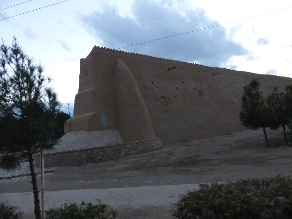 Das Silk Road Hotel, in einem traditionellen Lehmziegelhaus, liegt fast neben der Jame- und Rokn-od-Din-Moschee, beide aus dem 14. Jahrhundert. Wir essen dort zu Abend, Camel meat stew, um die Kamelfleischvermarktung anzuheizen – schmeckt wie Rinderschmorbraten, sehr gut! Treffen Jutta und Carsten die mit ihrem T3 ein halbes Jahr unterwegs sind. Der Abend wird lang. Vor dem Hotel steht ein Motorrad mit NE-Kennzeichen. Den finden wir auch noch!