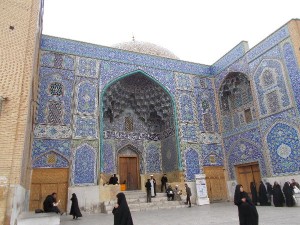in den Arkaden befinden sich Geschäfte. Im Norden liegt der Zugang zum Großen Basar von 1619, geschmückt mit dem Wahrzeichen der Stadt Isfahan: Schützen – passt doch! – , im Westen liegt der Ali-Qapu-Palast mit toller Terasse,