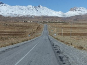 Wir fahren nach Shahr-e-Khord im Westen Isfahans, wo sich viele Bahktiari-Nomaden niedergelassen haben. Am nächsten Morgen, auf 2000m, sind es vier Grad, die Gipfel der umliegenden Berg sind weiß. Wir kaufen Brot und fahren weiter durch immer einsamere, höhere Gegenden.
