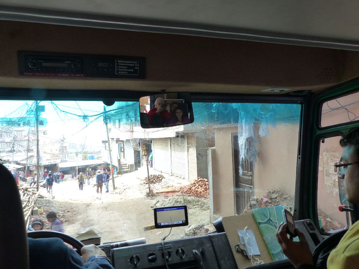 Ein Nachsatz zu Nepal. Ein Land von großer Vielfältigkeit der Landschaften, Kulturen und seiner Menschen. Große Armut, große Liebenswürdigkeit und Hilfsbereitschaft, unerträglicher Abfall, wie auch in Indien. Dabei das Bemühen um Verschönerung, seien es die bunten Häuser, Blumen auf Fensterbänken und Vordächern oder kleine Verzierungen wie an Fensterrahmen, den bemalten Wänden einer Imbissbude, zu sehen besonders an diesen zahlreichen Stätten des Weltkulturerbes. Im Kathmandutal allein gibt es sieben davon. In Kathmandu ein furchtbarer Smog. Der Verkehr ist noch chaotischer als in Indien und im Iran. Die dringend benötigte zweite Spur wird von ausschließlichen privaten Busunternehmen in der Regel als Haltestelle benutzt. Alex gefällts. Ich glaube, die Menschen hier sehen die Berge höchstens einmal im Jahr. Hier alt zu werden ist hart. Durchschnittsalter ca.67 Jahre. Sehr leckeres Essen, teils indisch und chinesisch angehaucht, aber doch auch mit sehr eigenem Geschmack. Auch scharf!!! Die Kinder hier sind neugierig, sprechen manchmal schon richtig gut Englisch. Der Kontakt ergibt sich schnell. Zum Abschied machen sie mir Geschenke. Neu für uns ist die respektvoll gemeinte Anrede Großmutter und Großvater. Na ja.. Nepal ist eine wichtige Erfahrung für uns.